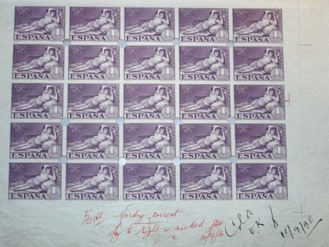 El rey Alfonso XIII autorizó la emisión de una colección de sellos de 1, 4 y 10 ptas. en los que se representaba el cuadro de Goya “La maja desnuda“. Era el primer sello en el que aparecía un desnudo femenino y, lógicamente, para la época fue un escándalo… y un éxito de ventas. Según cuenta la leyenda, en sociedades tan puritanas como la estadounidense no se podía tolerar tal atrevimiento y las cartas que se enviaban a los EEUU con estos sellos eran devueltas al remitente. Esta historia tiene todas las papeletas de no ser veraz, pero, conociendo a la sociedad estadounidense, sí verosímil.