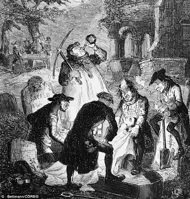 Durante los siglos XVIII y XIX estos ladrones de cadáveres fueron los que proporcionaron cuerpos a los escuelas de anatomía y facultades de medicina. Centrándonos en el Reino Unido, el problema era que legalmente sólo los cuerpos de los condenados a muerte se podían utilizar para estos menesteres, y era una oferta que de ninguna manera podía satisfacer la demanda existente. Así que, estos ladrones visitaban los cementerios para exhumar los cadáveres de muertos recientemente -antes de que el cuerpo comenzase a descomponerse- y abastecer a los médicos y estudiantes. Aún siendo delito, las condenas impuestas a los ladrones de cadáveres no eran muy severas y muchos decidieron que merecía la pena arriesgarse porque era un negocio muy lucrativo. Así que, los familiares de los difuntos tuvieron que tomar medidas: hacer guardia ante las tumbas de sus seres queridos, utilizar ataúdes de hierro o cubrir las tumbas con armazones de hierro (mortsafe)