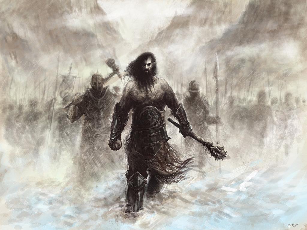 Todos sabemos que en la sociedad vikinga había un rey o jarl, guerreros, campesinos y esclavos. Cuando se daba la época de los saqueos e incursiones, normalmente en verano, los campesinos cambiaban azadas por espadas y se echaban al mar. No obstante, había un tipo de individuo en esta sociedad vikinga que no gozaba de esta versatilidad y a lo largo de su vida nacía y moría con el mismo rol… el Berserker (Berserkir en plural), un fiero guerrero, un verdadero hijo de Odín que por delante de la infantería se lanzaba semidesnudo, inmerso en un trance de muerte y sed de sangre hacia quien tuviera delante, ya fuera amigo o enemigo… de ahí que fueran siempre los primeros en filas. También se lee que era así por pura impaciencia. Tal era así que a veces se tiraban de los barcos antes de tiempo y morían ahogados, antes siquiera de entrar en batalla.